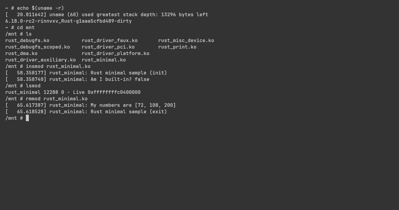 rmmod rust_minimal.ko